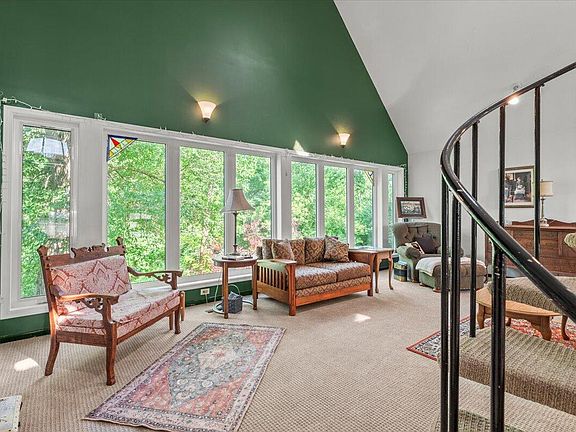 Welcome to the coolest house on the Ridge! This striking architectural gem makes a bold statement with its modern design, soaring ceilings, and walls of windows that flood the home with natural light. The main floor offers a warm, inviting flow perfect for entertaining or quiet nights in, while the upstairs bedrooms feel tucked-away and private. Out front, a charming bridge walkway sets the tone for this one-of-a-kind home, nestled in a wooded setting that feels like your own retreat yet keeps you close to all the conveniences of Council Bluffs. With fresh paint & decking it has curb appeal that turns heads and a layout that's both stylish and functional, this home isn't just a place to live--it's a place to be remembered.