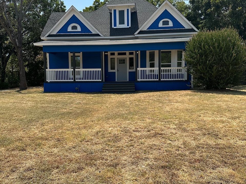 THE BIG BLUE HOUSE IS AVAILABLE FOR RENT! Adorable and updated Craftsman style home! 3 bedrooms, 2 full baths. Large covered front porch greets you before entering the living area. Three bedrooms are all separated. Master bathroom has soft close vanity drawers and cabinets, medicine cabinet and tub & shower combo. Large renovated kitchen with granite counters has new cabinets, sink, dishwasher, fridge, range and oven. No disposal. Corner cabinets have built-in lazy-susans. Small area open for a small freezer or desk. Dining area is adjacent to the kitchen, with a washer & dryer closet. Large back yard with many trees to enjoy the evenings & entertain. Storage building should be used with caution. Back yard is only partially fenced. Attic to remain locked except to change ac filter, and no attic space is to be used for storage by tenant. All persons 18+ must apply. Full background check so all applicants must have SS number. Combined gross income must be at least 3x the rent. Dogs allowed. No evictions. Property manager can send link to apply. Must see property in person before application can be sent. Must maintain renters insurance. Property available on December 5, 2025.