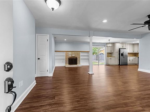 Garage for storageFully fenced yardBright open layoutLarge front porchNew laminate floorsWarm butcher block countersLight cabinetry