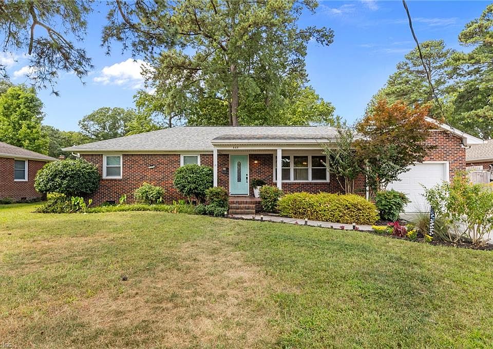 Welcome home to Elizabeth River Shores! This beautifully updated brick ranch blends charm and comfort with easy, one-level living. Spend mornings on the large front porch with coffee in hand, then step inside to a bright, open layout where living, dining, and kitchen spaces flow together seamlessly. The kitchen’s light cabinetry and warm butcher block counters create the perfect backdrop for gathering with friends and family. With 3 bedrooms and 2 baths, there’s room for everyone, plus a garage for storage and convenience. New laminate floors run throughout, and recent updates—including a newer roof, water heater, and attic insulation—offer peace of mind. Out back, the fully fenced yard is a private retreat for entertaining, gardening, or simply unwinding. And with no HOA, you can truly make this home your own!