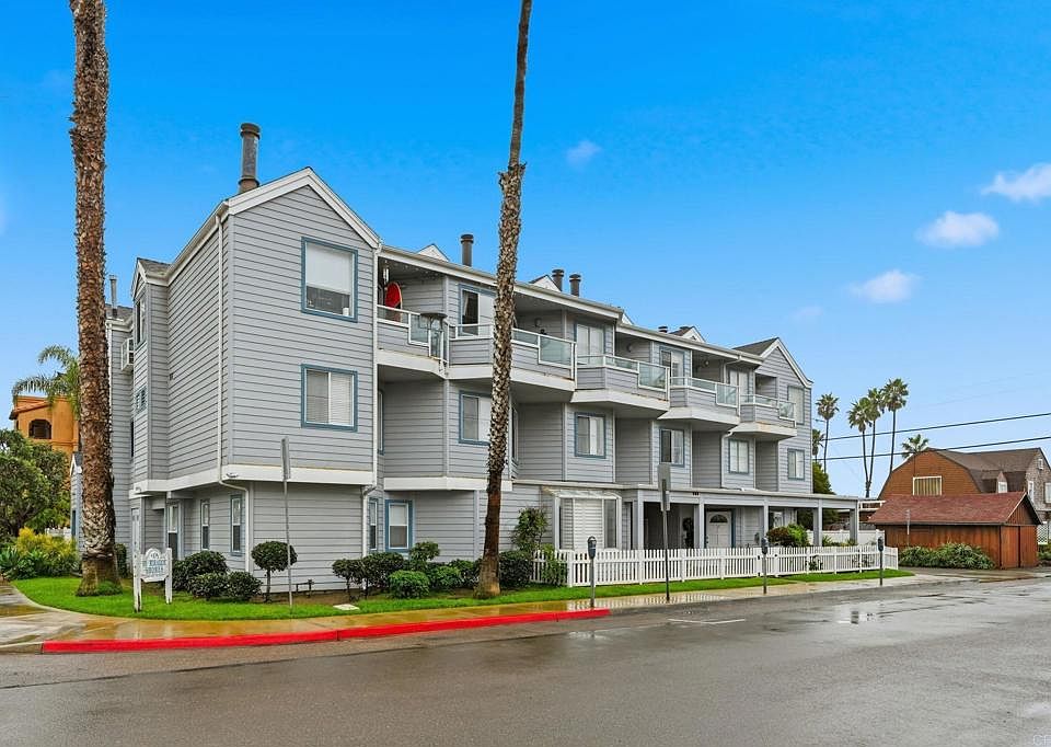 Welcome to El Mirador Shores—where coastal living meets modern comfort! Just one block from the beach, this beautifully upgraded condo offers an ideal blend of convenience and style. The open kitchen features granite countertops and stainless steel appliances, while laminate flooring flows throughout the main living areas, with carpet reserved for the bedrooms. Enjoy the ease of an in-unit stackable washer and dryer, plus two reserved gated carport parking spaces and additional storage. Both bedrooms are generously sized, and the primary suite boasts an impressively large walk-in closet. HOA dues cover water, trash, and sewer for added value and peace of mind.