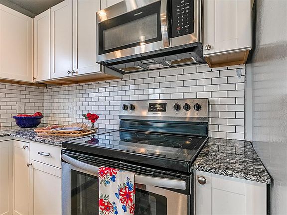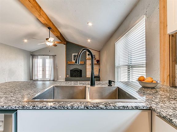 Come see this cute 2 bed, 2 bath home located in east Moore. The home has been updated nicely with subway tile, granite, stainless steel appliances, a barn door, stylish lighting and more. This home has a brand new (2025) roof, (2025) dishwasher (2025) disposal, and the HVAC was replaced in 2023.The backyard has a beautiful mature tree a wood deck and a small shed for extra storage.