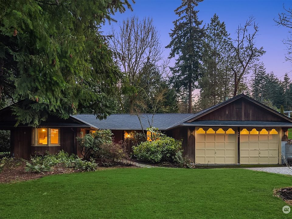 Level entry mid-century rambler in convenient Mirror Lake location offers a terrific floor plan with all the right spaces, perfectly situated on an expansive, hard to find, nearly 18,000SF corner lot. The best of one-level living with large kitchen, formal dining room w/ bay window + huge living room w/ wood burning fireplace and French doors opening to private brick patio and enormous backyard with tons of space to relax, garden + play. 3 bedrooms including spacious primary suite w/ soaking tub + French doors opening to private deck—could be ideal for future hot tub. 2 guest bathrooms. 2 car attached garage + bonus basement storage space. Move in ready w/ new roof, paint + carpet w/ so much potential to customize for instant equity!