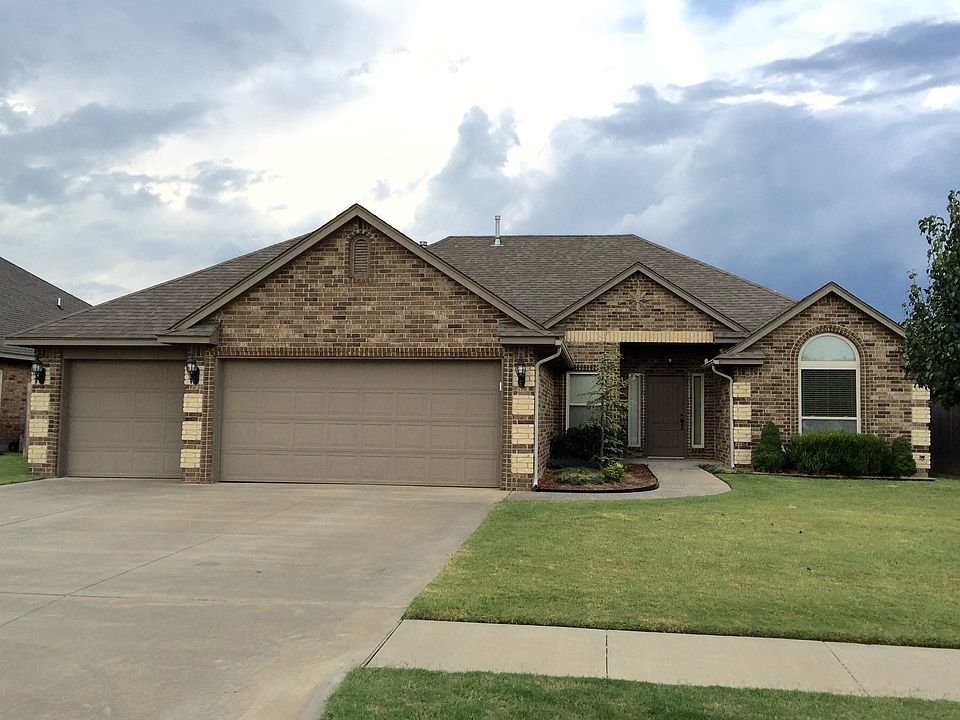 Storm Shleter in garage. Over 1700 sq feet for lease in Moore, Ok. Large living room with fireplace. Granite tops in kitchen, built-in microwave, stainless steel appliances. Nice master bedroom suite with shower and separate tub. dual closets. This home is located on a cul-de-sac, very nice neighborhood. This home is available Nov 1 until July 30, 2017. Short term lease only.