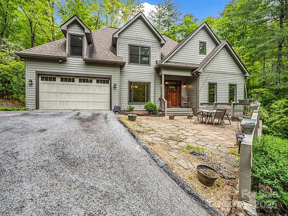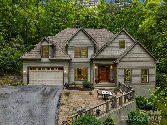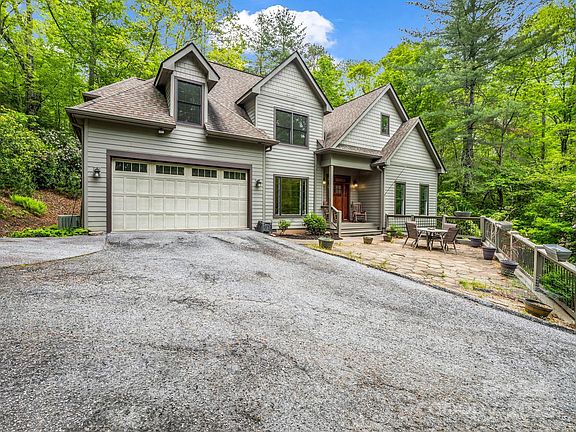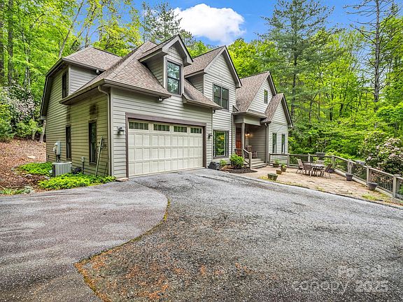 Experience mountain living at its finest in this stunning custom home located in the sought-after gated community of Connestee Falls. Perfectly positioned on 4 combined lots totaling 1.47 private, flat acres, this peaceful retreat offers a serene setting with a gentle creek flowing through the front yard. Inside, you'll find rich solid oak hardwood floors, soaring 30-foot ceilings, and a striking stone fireplace that anchors the spacious main living area. The light-filled primary suite is conveniently located on the main level and features a relaxing, spa-like bathroom. A large screened porch and bonus room—both with tongue and groove ceilings—provide the perfect spots to unwind or entertain. Upstairs includes two additional bedrooms, full bath and bonus room.Other highlights include instant hot water, a 2-car attached garage, main-level laundry, and a generous crawl space with full-size door for storage or workshop space.