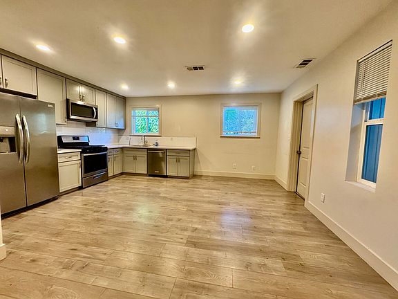 Spacious 2-bedroom and 2-bathroom duplex available for rent. Cozy backyard with many fruit trees. Open concept kitchen with gray shaker cabinets, stainless steel appliances, laminate flooring throughout, and a laundry room. Newer windows and a central HVAC system. The garage is to be shared with other tenants for storage, one reserved parking space on the front.