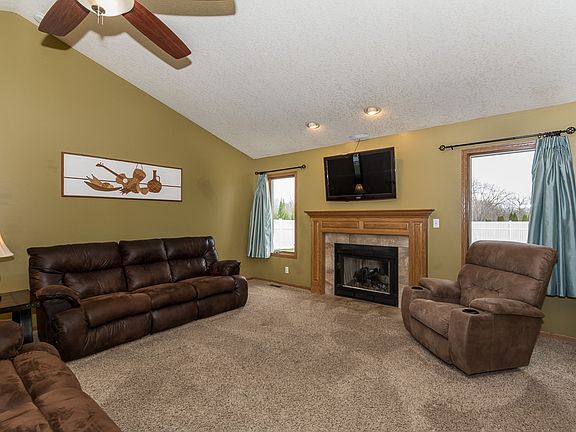 This move in ready, well insulated ranch, is located in a family-friendly neighborhood, close to Historic Downtown Leclaire! The three season room overlooking the yard, brings the total finished square footage to 2129. The main level has carpet, hardwood, tile floors, vaulted ceilings, formal dining room, and a gas fireplace. Also on the main level are 3 bedrooms, 2 full baths, a half bath and laundry. The attached oversized 3 car garage has plenty of room for storage! The kitchen features hardwood floors, quartz countertops, tiled backsplash and breakfast bar. The master bedroom is located on the main level and features carpet floors, and a spacious walk-in closet. The attached master bath includes tile floors, quartz countertop, jetted tub and refinished tile shower. The unfinished lower level provides room for future expansion. Outside you'll find a large back yard with a vinyl privacy fence, a raised vegetable garden, stone fire pit, and exposed aggregate patio.