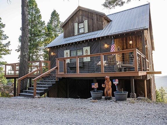 The Sunset Home! This gorgeous and unique one of a kind home situated within the heart of the Village of Cloudcroft offers some the best sunset views in the village along with clear sight of White Sands national park and Sierra Blanca all while being walking distance to shopping and dining. A beautiful private setting while conveniently located. From the minute you arrive to the house you are greeted with one of a kind craftsmanship from the reclaimed weathered poplar and redwood that adorns the outside with a hand hewn herringbone pattern. The warmth continues inside as you enter the home to a grand foyer that showcases the wide staircase that will take you to the upper and the lower floors and a bright and airy grand room that houses the kitchen, living room, and dining room along with the wall of views of the Basin below. Reclaimed maple floors and weathered wood accents invite you to cozy up by the fireplace. The kitchen boast new solid surface countertops, a bar to entertain guests or have breakfast along with a window centered over the sink to watch the elk walk by. The deck adjoining the living room offers plenty of room for those summer bbq's while taking in the stunning views. There is also a powder room located on this floor for convenience. Downstairs you will find two bedrooms both with their own en-suites, as well as the laundry room, a built in office for anyone needing to get a little work done and a game room. The living room adjacent to the game room could be converted to a 4th bedroom since it also has an en-suite. The upper floor is home to the primary suite with an en-suite that makes you feel like you are in the trees along with 4 walk-in closets. This home has been well loved by both families that have called it home and it shows with all the little details that have remained. The home was designed and built by a professional engineer and interior designer. The steel foundation provides that the home is solid! The home also features a whole home generator. New kitchen appliances to be installed. The Sunset Home is a must see, you won’t be disappointed so make an appointment today!