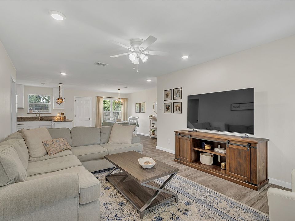 Step into this fully updated gem featuring modern upgrades throughout—including energy-efficient windows, stylish ceramic tile with a wood-look finish, granite countertops, and contemporary light fixtures. The open-concept layout creates a spacious, inviting atmosphere, ideal for entertaining or family time. Enjoy the large backyard, perfect for gatherings or relaxing outdoors.