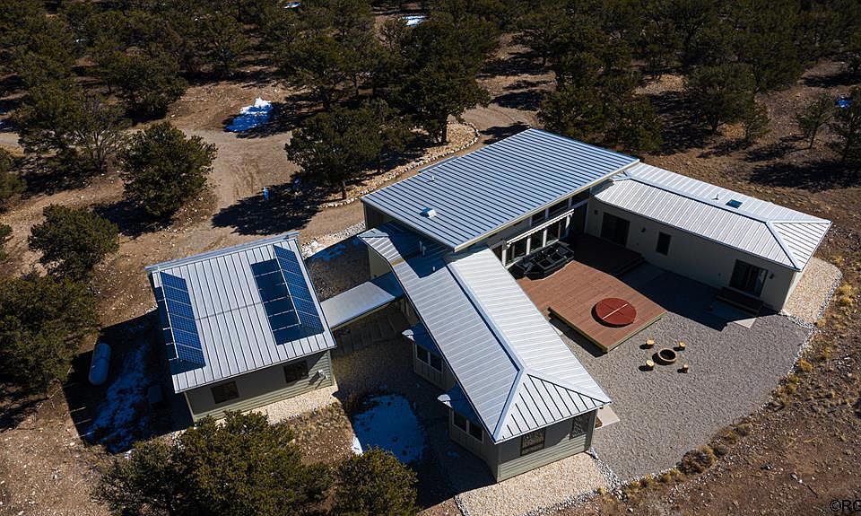 Spectacular, fully furnished, turnkey, contemporary home on 49.6 secluded acres, blending comfort with functional living space. The Master suite is in its own private wing, and custom soundproofing between 2 bedrooms in guest wing. Soaring loft-like main room with incredible kitchen, dining, and living space with gas fireplace. Cook's kitchen featuring high end gas range, stainless steel appliances and fixtures, and walk-in pantry. A tankless hot water heater for endless showers, and radiant heat bamboo flooring throughout for barefoot comfort. A large deck with soaking tub and a fire pit make it perfect for entertaining. Solar ready, includes a Polaris 700 UTV, outdoor furniture, gas grill, AV equipment, many extras. A great VRBO income producing property. Located in a gated area with two small seasonal creeks, varied terrain with a meadow, pinon and lodge pole pines. You won't find 50 acres this beautiful so close to Salida.