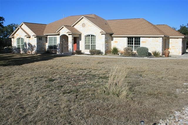Outstanding opportunity on 3 acres in beautiful Double Horn Creek subdivision. Almost new and pristine one story home featuring great floorplan with space in all the right areas! Large and open kitchen with island and separate pantry. Dedicated study with wood floors. Huge 3 car garage for cars and hobbies including back yard direct access and half bath in adjoining utility room. Beautiful and private pool. Pretty acreage cleared mostly of cedar and with abundant, welcome trees. Located far off of highway 71, a very peaceful setting.
