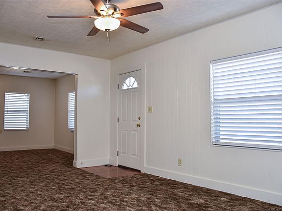 Charming starter home! This spacious home offers 2 bedrooms, 1 bathroom, roomy living room/dinning room, freshly painted, new carpet, attached oversized garage, storage building fenced back yard & much more!