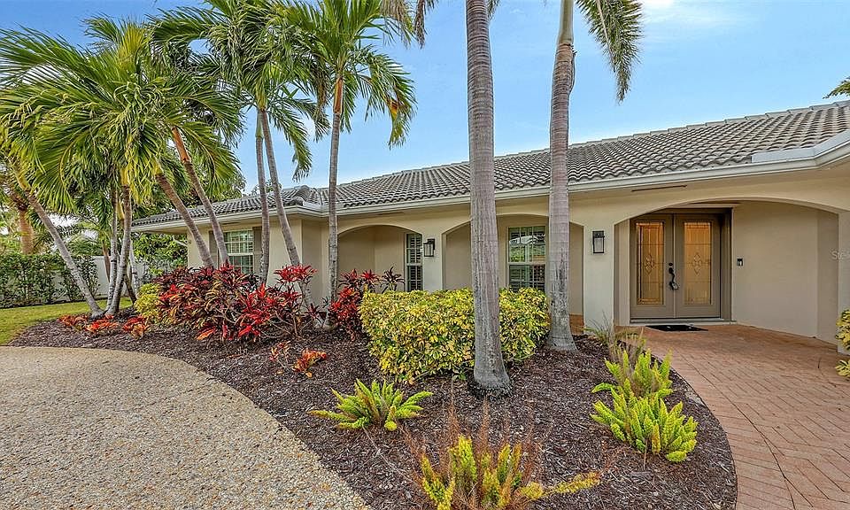 This lovely Bird Key garden home resides on a corner lot with a large circular paver driveway and beautiful landscaping that leads to the front door with the 2 car garage located on the side of the house. Inside, you will find abundant natural light with many windows and glass sliders that afford a splendid view of the large yard and pool area with a private garden wall. This three-bedroom residence has a split floor plan offering a private master suite, complete with 2 walk-in closets, an en-suite bathroom, and sliding doors to the pool deck. The two guest bedrooms and a second bathroom complete the other end of the house. A powder room and an oversized laundry room with a sink and loads of storage are a bonus not found in many garden homes. The kitchen overlooks the large backyard and pool area, with granite countertops, stainless steel appliances, and a breakfast bar overlooking the family/dining room. The house has high-impact windows & sliding doors, a heated pool, a well for irrigation, and mature lush landscaping that provide privacy and a large fenced back yard. The most recent upgrades and improvements from the interior to the exterior include re-ling the plumbing under the slab. The garage was gutted, painted and the floor epoxied. Updated interior baseboards and stunning interior lighting were installed throughout the home, giving it an updated, sleek look. This home is move-in ready. Live the comfortable Florida dream by opening large sliders to the pool area, with neutral tile throughout and a spacious flowing floorplan that makes the indoor-outdoor lifestyle easy. This residential island has its own optional Bird Key Yacht Club, tennis courts, swimming pool, fitness room, social scene, boat slips, marina, indoor and outdoor dining. These are the perfect ingredients for making this your private island retreat, complete with nearby beaches, dining, shopping, excellent schools, and the beautiful downtown area.