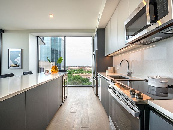 Eastline Residences is an elevated residential tower comprised of 330 well-appointed apartment homes in Dallas' promising Eastline district. Our high rise apartments in Dallas offer a thorough selection of finishes and floor plans, including studios and one-, two- and three-bedroom homes, all crowned by a penthouse selection on the 28th floor. With a stunning glass-frame design, each residence is awash in natural light to bring the outdoors in, complementing the active lifestyle of the area and the adjacency of the University Crossing Trail. A comprehensive suite of luxurious amenities and services enhances Eastline Residences' architectural appeal and caters to every essential of an inspired life.