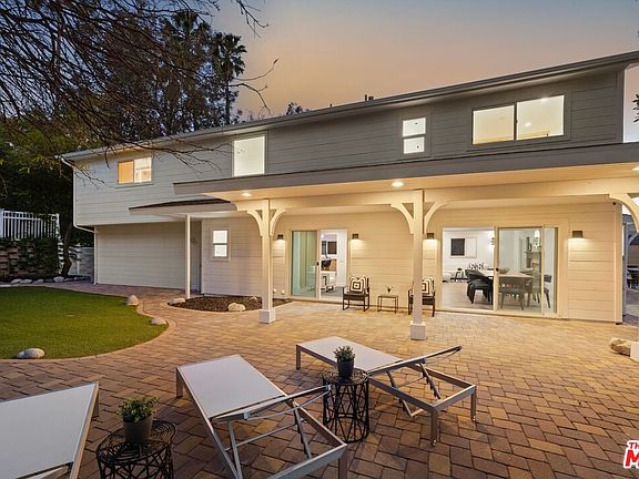 Located in a highly sought-after neighborhood in Woodland Hills, this beautiful and extensively renovated residence has been reimagined by famed designer Gregory Storm. This stylish residence features 4 bedrooms, 4 bathrooms, and sublime privacy on a large 11,200+SF lot, which is complimented by a long driveway, breathtaking views, and every imaginable modern amenity. The gourmet chef's kitchen boasts professional-grade stainless steel appliances, bespoke custom millwork, and finely curated poured concrete slab countertops. Relax and unwind in the primary suite - a true retreat featuring a dramatic fireplace, serene views, a spa-like ensuite bathroom featuring a dual vanity and rainfall shower, a large soaking tub, and a boutique-styled walk-in closet. Three additional guest bedrooms offer the perfect place to host guests or enjoy a home office or gym. The backyard is a true oasis with multiple outdoor seating, dining, and entertaining areas ready for a brand-new, sparkling pool, which the Seller is happy to include at a competitive additional cost. This is a rare opportunity to live in one of the most desirable neighborhoods of Los Angeles with some of the County's best schools and just minutes away from Topanga Village and Social, which has some of the finest dining, entertainment, and shopping the area offers.