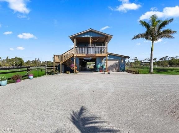 LOOKING for a Florida HORSE facility? Moonshine Acres Tropical Horse Farm, is an equestrian BARNOMINIUM property that has sanctuary for both horses and their riders alike on Pine Island FL. Located on a private double gated entry off Stringfellow Road, this 8.85 acres of land is YOUR opportunity to own and grow your business which could include boarding, lessons, training or expand to trail rides and breeding too. A completely HORSE fenced property that backs to 12 miles +/- of trails that lead directly to Gulf waters to swim HORSES. Eight expansive and adjoining paddocks, 6 of which are interconnected for uninterrupted movement, plus a dedicated paddock designed for specialized care (a total of 9). Providing a safe and comfortable environment for your horses to enjoy. Riders wanting to ride and enjoy their horses or peaceful leisurely rides, the property is equipped with a Regulation Small-Size Dressage Arena that ensures the ideal setting for training or casual riding. At the heart of the farm is a professionally designed barn, laid out to meet equestrian standards. The barn houses 8 spacious stalls, each outfitted with automatic watering systems and cooling fans to ensure comfort for horses. Tack Room offers ample storage for all your riding gear, a private bathroom and a Feed Room. The barn also includes a comfortable updated 2-bedroom, 1-bathroom Living Quarters, kitchen and a balcony with tremendous farm views! This BARNDOMINIUM is a perfect home for on-site care or staff. The HORSE property is equipped with additional structures, including a hay shed, a 30’ x 50’ workshop, and a carport large enough to accommodate RVs or horse trailers. There is a run-in shed and convenient wash stalls. You will see the property offers the potential to build your custom Florida dream home, tailored to your specific equestrian lifestyle and preferences. Moonshine Acres is more than just a farm; it is an established, successful business address. The idyllic setting of Pine Island also provides easy access to the Gulf of Mexico, offering water sports, fishing, and beach outings. This is a beautiful equestrian paradise for horses and riders, coupled with the laidback lifestyle of Southwest Florida’s Gulf Coast. This also has many other potential uses including rezoned commercial use, Public storage facility, RV and Boat storage, a must-see consideration for investment.