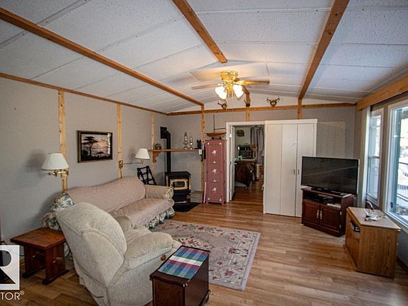 Located in the Floatingstone area, this seasonal cabin is surrounded by mature trees, offering privacy in a natural setting. The property features an updated open-concept layout with one large bedroom, as well as a separate guest cabin. A three-season sunroom provides an enclosed space to enjoy the outdoors. The lot is elevated, offering partial views of the water, and includes multiple storage sheds and a firepit area. Situated at the end of a no-exit road, the property is within walking distance to the shoreline.