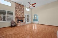Sparkling backyard poolCozy fireplacePlanter boxesMature treesRefrigerated airSmart functional layout