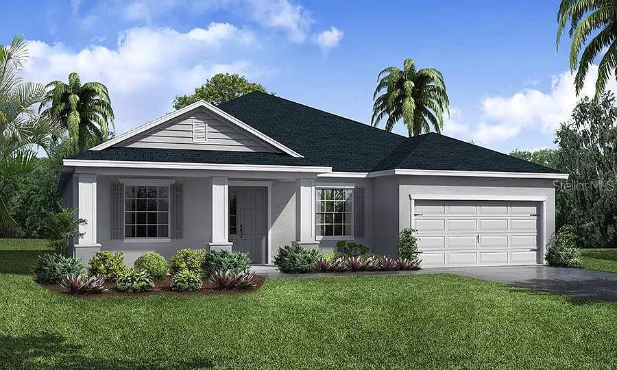 Under Construction. New construction home with 2109 square feet on one-story including 4 bedrooms with den, 3 baths, and an open living area. Enjoy an open kitchen with Samsung stainless steel appliances, and a large breakfast bar fully open to the gathering room. The living area, laundry room, and baths include luxury wood vinyl plank flooring, with stain-resistant carpet in the bedrooms. Your owner's suite is complete with a walk-in wardrobe and a private en-suite bath with dual vanities, a large, tiled shower, and a closeted toilet. Plus, enjoy a covered lanai, 2-car garage, custom-fit window blinds, architectural shingles, energy-efficient insulation and windows, and a full builder warranty. “Please note, virtual tour/photos showcases the home layout; colors and design options in actual home for sale may differ. Furnishings and décor do not convey.
