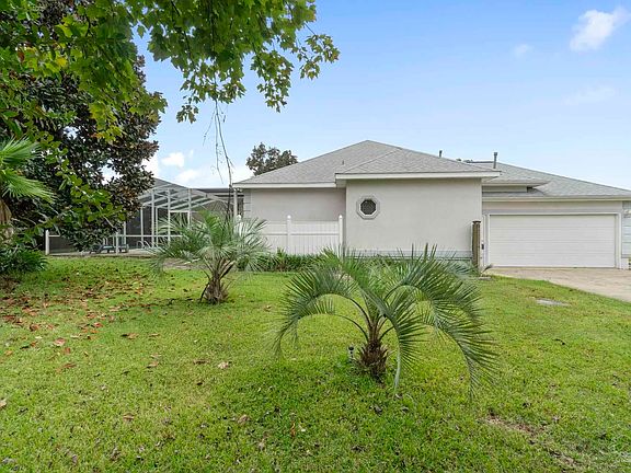 This beautifully maintained South Florida–style home in Chevalier, built in 1997, offers 2,045 square feet of inviting living space. With 3 bedrooms and 2 baths, and a large office area, this home combines comfort, functionality, and timeless design. Inside, vaulted ceilings in the kitchen and great room create an open, airy feel, while skylights and lighted plant ledges bring warmth and character. Flooring includes a mix of tile and carpet, and the great room is centered by a cozy gas fireplace. The kitchen features a gas cooktop, complemented by a gas water heater for efficiency. An indoor laundry room adds everyday convenience. The primary suite serves as a private retreat, while the additional bedrooms provide ample space for family or guests. A side-entry garage, complete with built-in cabinets, ensures privacy and extra storage. Situated on a desirable high corner lot with established landscaping, this property includes a new roof, HVAC system, pool enclosure, and brand new windows. Outdoors, enjoy your private inground swimming pool, enhanced by a screened enclosure. Located just minutes from Johnson Beach and military bases, this home offers the perfect blend of relaxation, convenience, and coastal living. A must-see property that is move-in ready and designed for both everyday comfort and entertaining.