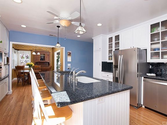Welcome to this beautiful single story turnkey home with 3 bedrooms, 2 bathrooms, family room, dual pane windows through out and detached 2 car garage. As you enter the living room, you will notice the original natural red oak hardwood flooring that carries through to the hall and 2 bedrooms - Fiberglass front door and picture window with UV protection - Newer natural red oak hardwood flooring in the dining room and kitchen - Opened up to the dining room is a large updated kitchen with recessed lights, wood cabinets, pull out shelves in the pantry, granite counter tops, built in filtered water and soap dispensers, double sink in island with breakfast bar - The 2015 Kenmore Elite stainless steel appliances staying along with the 4-barstools, range has warming drawer & griddle - Both bathrooms were remodeled in 2018 with marble counter tops and upgraded fixture finishes, oil-rubbed bronze in the hall bathroom, polished chrome in the master bathroom along with a triple mirrored medicine cabinet, built-in hamper - Skylights in both bathrooms that are screened and can be opened - Master bedroom has a walk in closet - Additional 2 bedrooms have double mirrored closet doors - Convenient hallway linen closet and indoor laundry room - Large family room with open beam ceiling, gas/wood burning brick fireplace retrofitted with H-burner and Fireglass, LVT flooring and custom drapes opens to covered patio through sliding glass doors, great for entertaining! Attic insulated and 2 foam insulation over open beam ceiling in family room - Landscaped back yard is completely fenced and private - Backyard flower beds are plumbed for sprinklers, front yard sprinklers are automatic - Long driveway leads to detached garage that was drywalled in 2017 - Roof was new in 2016 - Located near Mayfair Park, award winning schools, Lakewood Shopping Center, Candlewood Restaurant Row, Public Transportation and Freeways. - Make sure to see the 3D virtual tour!