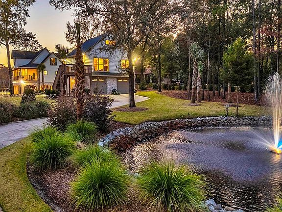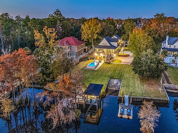 Sparkling poolGas fireplacePrivate boat rampWraparound porchBeautifully designed bathroomLush landscapingNatural river views