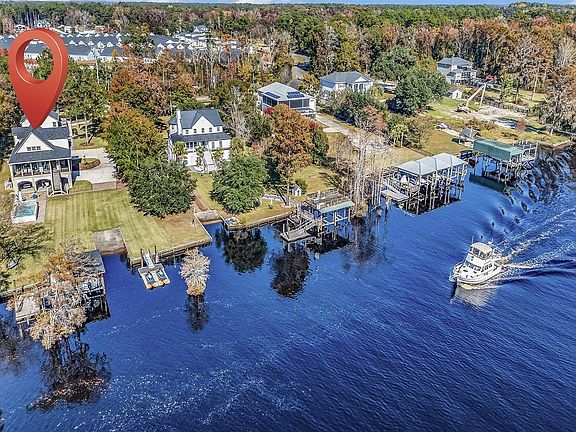 Welcome to 6052 Renata Lane — a truly unique riverfront retreat. As you enter this spacious property, you’re immediately calmed by the tranquil pond and fountain surrounded by lush landscaping. Choose your path toward the main house, the guest apartment, or continue on to the spectacular backyard — complete with a sparkling pool, a fixed dock with a boat lift leading to a floating dock, and another floating dock for jet skis. Conveniently situated between the two is your own private boat ramp, offering direct access to the river for every type of water adventure. Turning toward the home, your eyes are drawn to the wraparound porch with large collapsible sliders that open the interior to the outdoors. This inviting space is perfect for relaxing and taking in the natural river views and abundant wildlife. Inside, the home is bright and airy with abundant natural light. The family room features a gas fireplace and vaulted ceilings, creating a warm and open feel. Flowing seamlessly from the family room is the dining area and a cozy sitting nook complete with a wet bar — ideal for entertaining. The kitchen is both elegant and functional, showcasing striking stone countertops and backsplash, high-end appliances, a custom range hood, and ample cabinetry. Just beyond, a discreet butler’s area with sink keeps hosting simple and tidy. The primary suite, conveniently located off the kitchen, offers a spacious walk-in closet and a beautifully designed bathroom. Nearby, you’ll find a laundry space, cleaning closet, two additional bedrooms, a full bath, and generous walk-in storage. This raised beach home provides extensive ground-level space for parking, entertaining, grilling, and more — plus a full bath and changing area for poolside convenience. The guest apartment is a highlight of its own, featuring a full kitchen, dining area, family room, separate bedroom and bath, and a private deck with stunning views. Downstairs, a two-car garage offers abundant built-in storage. 6052 Renata Lane is a rare property that offers versatility, comfort, and exceptional riverfront living. Be sure to watch the full walking video tour!