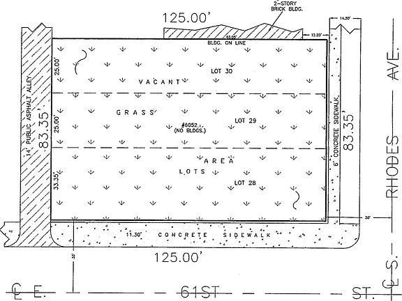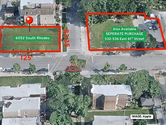 Prime Development Opportunity in rapidly redeveloping Woodlawn at 6052 South Rhodes. Exceptional opportunity to acquire a large corner lot (approx. 10,418 sq. ft.), with 125 Feet of Frontage on 61st Street and 83 Feet on Rhodes, just steps from 383-acre Washington Park, and less than half a mile from the University of Chicago. With a Minimum Lot Area/Per Unit of 2,500 sq. ft. and current B2-1 zoning, the site is ideally suited for development. Per the City of Chicago Zoning Code: "17-3-0103-B The B2 district permits residential dwelling units on or above the ground floor." This zoning flexibility makes the property especially attractive for development. The seller is also offering a second large corner at this intersection (MLS #12454210), representing a rare chance to acquire two prime large corner development parcels in one of Chicago's most dynamic growth corridors. Highlights & Neighborhood Advantages: Excellent proximity to the University of Chicago South Campus and to the Obama Presidential Center. Unmatched CTA Green Line connectivity, offering direct access to IIT, the Loop, Fulton Market, United Center, and beyond. Strong market demand for housing near train-accessible sites. Surrounded by successful recent redevelopments, including the Jewel-Osco at 61st & Cottage Grove. Walkable to the University of Chicago campus, Logan Center, UChicago Medicine, Midway Plaisance, and two nearby Green Line stations. Just one mile from the Lakefront. With Woodlawn's revitalization well underway, this property offers tremendous potential for developers and community builders alike. Bring your vision and be part of Woodlawn's future.