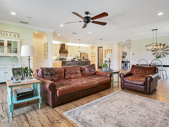 One acre, gated and set on a corner lot, with space to spread out: a main home that anchors, a guest house that stands apart, a pool built for weekends, and a three-car garage for everything else. The entry sets the tone: high ceilings, natural light pouring in, crown molding, wainscoting, and wide tile floors. It feels open, grounded, intentional. Off to the side, a second primary suite shows up early: coffered ceiling, double French doors, and a bathroom that’s all clean lines. Privacy from the jump. Then the house stretches wide. And the kitchen runs point: a massive island with seating, gas range with three ovens, and a walk-in butler’s pantry that doesn’t quit. Costco runs? Approved. This pantry gets your bulk-buy personality with counter space, storage, and a wine fridge tucked in. Everything spills into the dining and living spaces, where sliders pull the outdoors in. The main primary suite owns the back corner with direct lanai access, a swoon-worthy custom walk-in closet, and private ensuite that feels quietly luxurious. Bedrooms three and four share their own tucked-away wing with a full bath. Even the laundry is oversized, with a sink and storage that make it feel less like a chore. Closet organizers in every room mean the daily chaos actually has a place to go. Step out back and good luck coming in early. Oversized paver patio, pool with spa and stacked-stone spillway, built-in gas firepit poolside, and string lights overhead. It’s the kind of setup where conversations run long, the nights stretch later, and nobody wants to head inside. Covered lanais with ceiling fans and TV-ready walls off both the main home and guest house—it’s built to work year-round, whether it’s game day or a quiet Sunday morning. And the detached guest suite? It’s not an afterthought—it’s its own thing. Private entrance, living room, kitchenette, bedroom, full bath, and its own lanai. Perfect for multigenerational living, long stays, or when you just want extra breathing room. Details keep stacking: three-car garage, oversized laundry, central vacuum system, automatic gate, full perimeter fencing, oversized driveway with parking pad, ready for RV or boat parking. Located in a spot with a rare balance: acreage and privacy when you want it, access when you need it. Lake Nona’s Medical City, OIA, downtown Orlando, and the beaches are all within easy reach. This is living at its best—space, privacy, and a setup that works as hard as it plays.