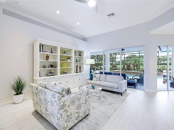 Have you ever wanted to experience resort style living? Now is your chance! This beautifully appointed 3 bed/2 bath home is located in Prestwick Place; a gated community nestled in the highly sought after Lely Resort. The Augusta floorplan is a split bedroom layout: primary suite and guest bedrooms located on opposite sides of the home. The expansive great room flows to an oversized lanai w/heated pool overlooking a peaceful lake. Highlighted features include: stylish updated kitchen and bathrooms, luxury vinyl and hardwood flooring, plantation shutters & freshly painted lanai/pool deck and more. New A/C in 2022, and a variety of updated appliances. Enjoy the vast array of amenities included w/the award-winning Players Club and Spa a required private membership with low fees for all that is offered; tennis, bocce, pickleball, fitness center/spa, casual/fine dining, 1 lap/fitness pool, 2 resort pools, fitness/social clubs, dog park and so much more. Lely offers both public (Mustang & Flamingo courses) and The Classics Country Club optional private membership. Lely Resort is also just minutes away from 5th Avenue, Marco Island, shopping, sightseeing and beautiful surrounding beaches.