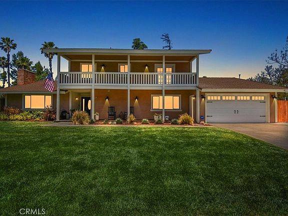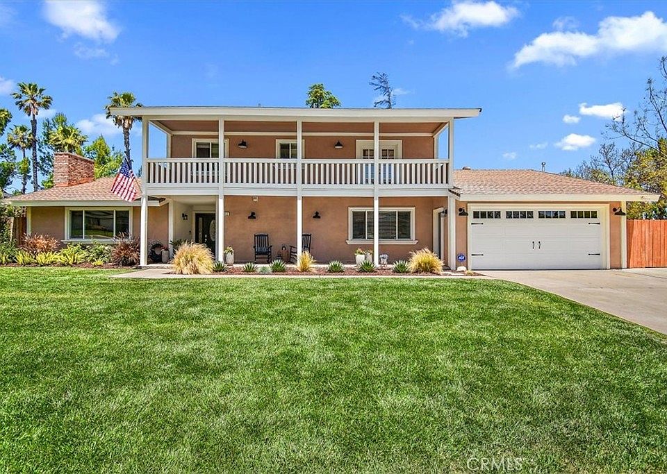 RARE CANYON CREST RENOVATED HOME WITH ADU! This unique home sits on the corner lot of a small and quiet cul-se-sac with views. This stunning home features an integrated ADU for you multi-generational living or multi-family needs. The ADU is complete with its own kitchen, laundry, family room, dinette, and large primary size bedroom and bathroom (dual vanities and walk-in shower with no step). The rest of the 1st floor is adorned with large family room with beamed ceiling and handsome fireplace, dining room, 1/2 bathroom, large updated kitchen with stainless steel appliances and eating area. 2nd floor Primary bedroom with extra large balcony and attached renovated primary bathroom. Three (3) additional bedrooms, full bathroom, and laundry room on 2nd floor. 2 car garage with epoxy floors and new garage door, 3 car driveway, RV parking, and optional boat parking or 2nd RV parking. Very private back yard with mountain views, 2 covered patio areas, sparkling pool, rod iron fencing surrounding pool, and updated landscaping fully irrigated on timers. HVAC system with 3 zones (upstairs, downstairs, and ADU) for individualized comfort in separate spaces, and whole house fan. Clear termite report.