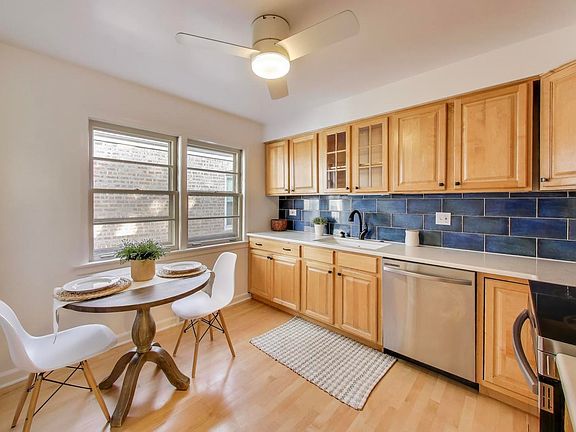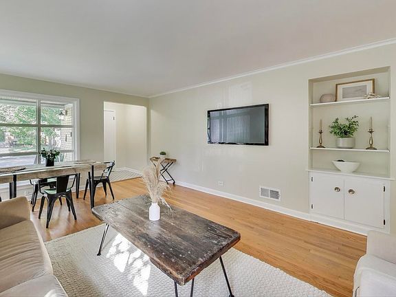 Enjoy the ease of single-story living in this classic raised ranch, featuring two bedrooms, two bathrooms, and an attached garage-all in the heart of sought-after Sauganash Park, just minutes from parks, schools, and retail. Start your day with coffee (or unwind with a cocktail) on the charming front porch, adorned with timeless wrought iron railings and perfect for greeting neighbors. Step inside to a spacious, light-filled living room that flows into a an updated eat-in kitchen, complete with maple cabinetry, quartz countertops, a stylish blue subway tile backsplash, and stainless steel appliances. The main floor also offers two comfortable bedrooms, a full bath, and a bright sunroom-ideal as a home office. Downstairs, the finished basement provides even more living space with a generous family room, a second updated full bath, a guest room or office, a laundry area, and abundant storage. Outside, enjoy a private, fenced backyard with ample space for entertaining, gardening, or simply relaxing.