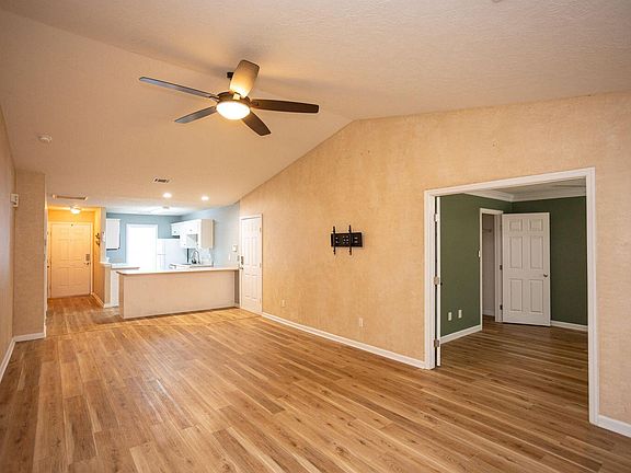 Featuring brand new waterproof LVP flooring throughout, the spacious living room boasts a cathedral ceiling, and French doors open to the third bedroom, ideal as a home office. The kitchen offers a breakfast bar, updated appliances, and comes fully equipped with two refrigerators/freezers, washer, and dryer.