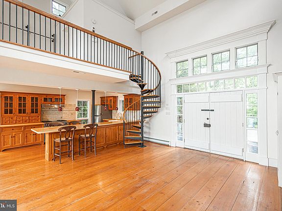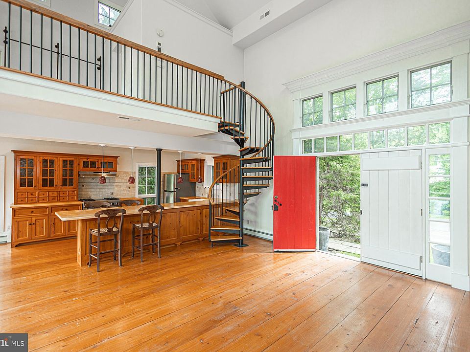 Enjoy fall in Bucks County! Stunning converted stone and frame barn in Solebury Township. Vibrant red doors lead to this bright and spacious two story apartment. Open concept floorplan features a floor to ceiling exposed stone wall and wood burning fireplace, wide plank floors, with a wall of windows overlooking the bucolic setting. A charming gourmet kitchen with Viking gas range, artisan subway backsplash, farmhouse sink, built-in pine hutch, butcher block countertops, and large breakfast bar offering countertop dining. Additional seating and dining options are available on the rear deck. Convenient first floor stackable washer and dryer. Second floor bedroom loft is accessed with a stylish spiral staircase. Ensuite deluxe full bath with tiled floor, soaking tub and walk-in shower. Nestled in a quiet, country setting proximate to the vibrant communities of New Hope and Doylestown. Tenant responsible for electric, cable, and pest control. Heat, trash, and lawn maintenance included.