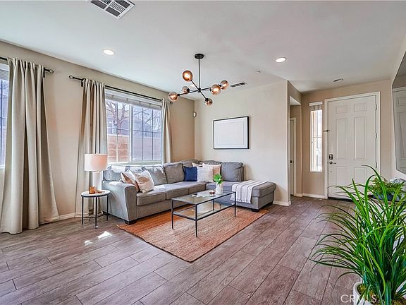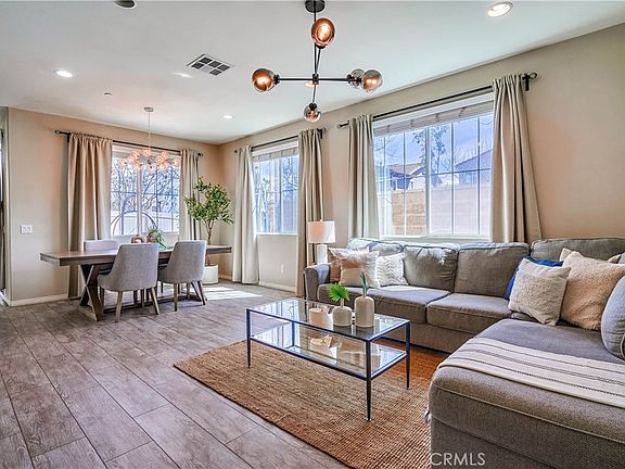 Nestled in the popular College Park Community, this detached home sits on a desirable corner lot with one of the largest yards in the community. The turn-key home features a thoughtfully designed kitchen with granite countertops, espresso-colored cabinets, stainless steel GE appliances, and modern pendant lighting over the island counter. The open-concept floor plan transitions seamlessly from the kitchen, living and dining rooms to the backyard with an abundance of natural light flowing into the home. Stylish wood-grained tile flooring, a remodeled powder room with new a vanity, mirror & light fixture, and direct access to the garage beautifully complete the first floor. The 3 bedrooms, 2 full bathrooms, and a dedicated laundry room are located on the second floor. The spacious primary bedroom suite has an extensive walk-in closet and bathroom with dual vanities, separate shower & tub. The home includes hard wired electric hook-up for electric vehicles, a natural gas line hook-up for a natural gas car, built-in garage cabinets for extra storage, and a year-old tankless water heater. The backyard is outfitted with artificial grass, paved concrete, and string lights perfect for welcoming family, friends, and pets. With ample street parking and an additional driveway parking spot, your guests will never have trouble parking. College Park is a great community with well-kept, luxurious resort-like amenities: pools, jacuzzi, showers, splash pads, reservable clubhouse for events, 24-hour gym, fire pits, bbq area, sitting and picnic areas. Walking trails, bike trails, horse trails, parks, tennis courts, and basketball courts near the home make for great quality time outdoors.
