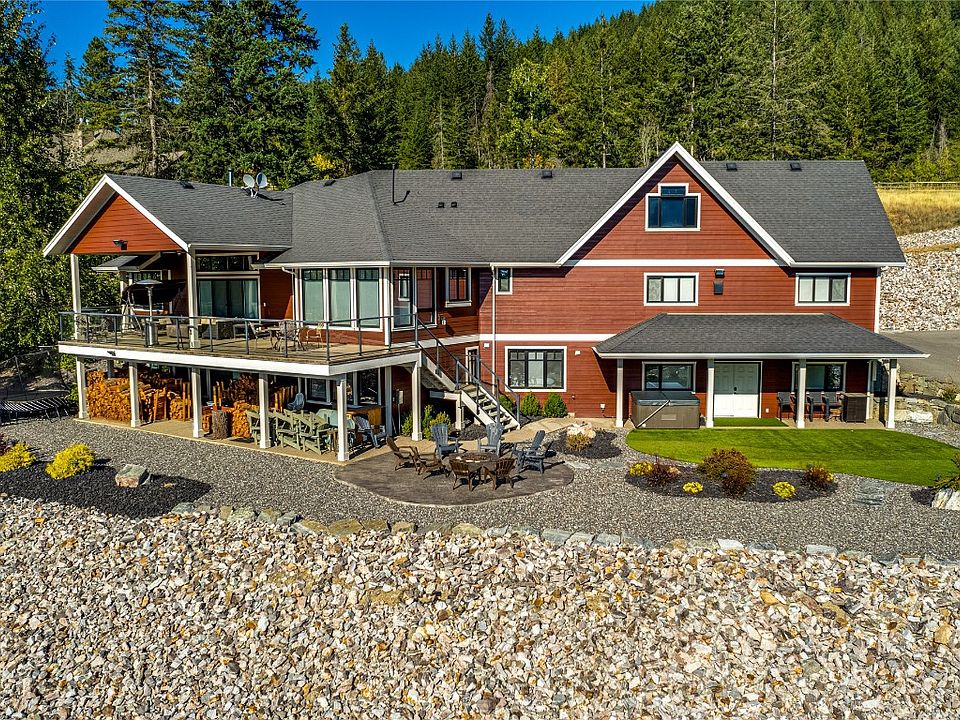Welcome to this custom-designed 5-bedroom rancher, spanning over 5,000 sqft. Nicely nestled on a private 5-acre lot surrounded by nature, this peaceful retreat offers sweeping views of the city and Okanagan Lake, combining privacy, luxury, and comfort in perfect harmony. High-end finishes throughout and abundant space make this home truly exceptional. The chef-inspired kitchen is a showstopper, complete with custom cabinetry, a huge island with a built-in sink, a gas stove, under-cabinet lighting, a striking glass tile backsplash, The bright and airy eating nook offers panoramic views of the city and lake, with a partially covered stamped concrete deck. The amazing great room takes your breath away with its spectacular inlaid ceilings and cozy fireplace, creating a warm and inviting space. Large windows flood the room with natural light, highlighting the Canadian long-length maple hardwood flooring throughout the main level. The master suite features direct deck access and a spa-inspired 5-piece ensuite, Large walk in closet. The walkout basement, equipped with in-floor radiant heating, includes two spacious bedrooms, a full bathroom, a games room, a flex room, a TV room, and a laundry room. This property is ideally situated, offering easy access to hiking, ATV, trails. Need space for work or hobbies? The detached, fully finished 40’ x 50’ shop, complete with 12’ x 14’ drive-thru doors and a 16-foot ceiling, is the perfect addition. Plus, there’s ample paved parking for all your vehicles and toys Come explore this one-of-a-kind luxury estate – it’s everything you’ve been dreaming of and more.