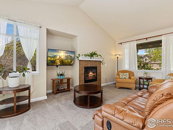 Don't miss your chance to own this thoughtfully designed ranch home in the desirable Oak Meadows neighborhood! Nestled on a quiet cul-de-sac, this welcoming home features a charming covered front porch and convenient ramp access for easy main-level living. Step inside to an open and airy living and dining space filled with natural light, vaulted ceilings, fresh paint, and a cozy gas fireplace. Sliding doors lead out to the private patio-an ideal spot to enjoy your morning coffee. The spacious kitchen boasts rich wood floors, abundant counter and cabinet space, and a peninsula with bar seating-perfect for casual meals or entertaining. The primary suite is tucked away at the back of the home with vaulted ceilings, a walk-in closet, and a large ensuite bath. Two additional bedrooms feature brand-new carpet and share a full bath. The spacious finished basement features a large rec room, a fourth bedroom, a full bath, and a flex space that's perfect for a gym, home office, or craft space. Outside, the fully fenced backyard has new sod and is ready for your personal touch. Save on your energy bills with solar panels. Ideally located close to parks, restaurants, grocery stores, and with easy access to I-25 for commuting. Pre-inspected and includes a First American Home Warranty for added peace of mind.