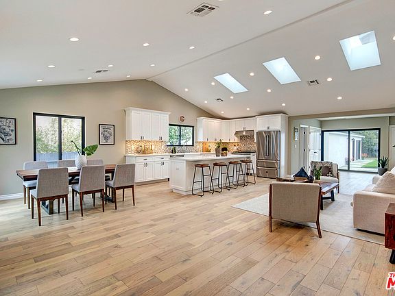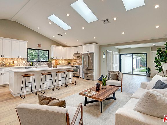 Follow the inviting walkway past manicured landscaping & step into this completely remodeled Westchester home. With hardwood floors sunlit by bay & skylight windows, the open concept living room is the heart of the home & provides ample space for formal dining & casual living. The adjacent kitchen boasts Bertazzoni appliances, marble countertops, & generous eat-in island. Outside, the expansive backyard is an oversized retreat with a lush lawn & patio hardscape. The backyard is a natural complement to the large detached studio, the perfect space for entertaining. Rejuvenate in the master suite, a sanctuary with sliding doors that open to the backyard & an elegantly tiled en-suite with fine fixtures & dual vanities. Upstairs, a second master suite overlooks the backyard & features a generous walk-in closet & luxurious en-suite. Two additional well-appointed bedrooms, featuring a sumptuous jack & jill bath, round out the floor plan of this perfect home for the California lifestyle.