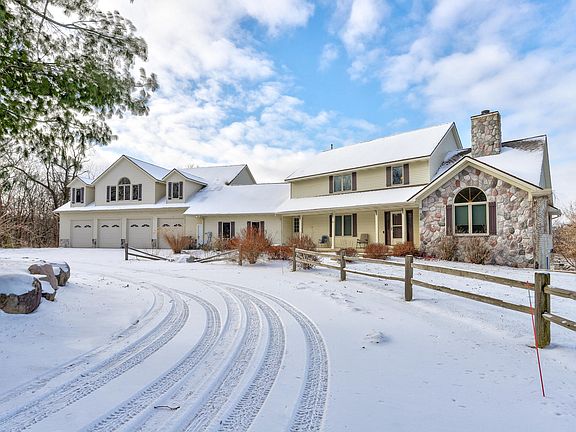 LARGE ADA FAMILY ESTATE with in-law apartment (separate quarters including living room, dining room, kitchen and two bedrooms) located on 4.65 acres (barn for horses or additional storage). This estate includes 3 full kitchens, 2 fieldstone fireplaces, formal dining room, family room, sun room, large game room on main level, lower level includes two family rooms, kitchen, bedroom, walkout to patio, pool, volleyball court, sculptured lawn and waterfall. The spacious apartment above the garage has a private entrance. Large 4 double deep stall garage can hold 8 cars and/or additional storage space. This home borders on Forest Hills and Rockford Schools (obtainable by school of choice). 8450 square feet of fabulous living in the privacy of Ada.