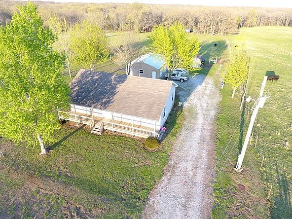 Move to the country 20 Acres with a very nice, low maintenance 2 bedroom 1 bath home all on one level. Enjoy the covered front porch 6 x 43 deck and a covered deck to the rear 8 x 12 - detached garage 24x30 with automatic openers, shed built in 2009 14x20, utility building 12x10 .Property is fenced and is currently leased for cattle. Land is part open, part timber, and has a pole barn/ corral and pond. There is also a creek running through the property.