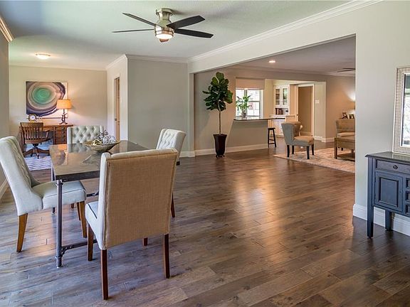 Beautifully updated home in great neighborhood. Living, dining, kitchen are open providing a great area for entertaining. Quality updates include windows, new wood type flooring, tile and carpet, new stainless appliances, quartz counters in kitchen and bathrooms. Freshly painted inside and out. All new windows have been installed. The 100 sq. ft. air conditioned bonus room would be great for home office. There is also a 24 x 16 sunroom that is not included in the square footage.