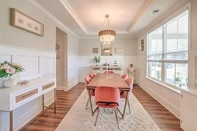 5 bed 3 bath home in Jackson Heights with over 2900 sq ft. Covered front and back porches. Hardwood flooring throughout the foyer, great room, dining room, kitchen and breakfast room. Kitchen boasts granite counters, tile backsplash and stainless steel appliances. 1 spare bedroom and full bath downstairs. Upstairs owners suite has on-suite bathroom with granite counters, double vanity, shiplap and tile shower. Owners closet is a dream come true with tons of storage and space. 3 additional spare bedrooms upstairs and spare bath with dual vanity. Fenced in backyard perfect for the family pet.