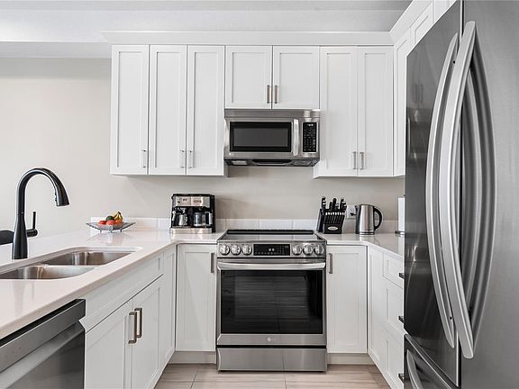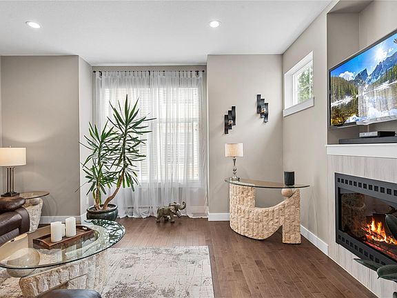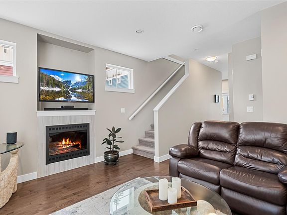 Welcome to Painted Village, a modern and well-maintained multi-family complex located in the highly desirable Pleasant Valley neighborhood. This bright and stylish 8-year-old corner townhome features 2 bedrooms, 3 bathrooms, offering an ideal layout for comfortable living. The home showcases impressive finishings throughout, including a kitchen with stainless steel appliances, quartz countertops & ceramic tile flooring. The kitchen flows into a spacious dining area with large windows and access to a private balcony, perfect for your morning coffee or a herb garden. The living room is equally inviting with another large window, cozy bench seating, an electric fireplace, & rich hardwood flooring. Upstairs, both bedrooms offer private ensuites & a convenient laundry area with a large linen closet is perfectly located between them. 9' ceilings throughout, a private entry, single-car garage, and a pet- and rental-friendly policy, this complex is the perfect place to call home.