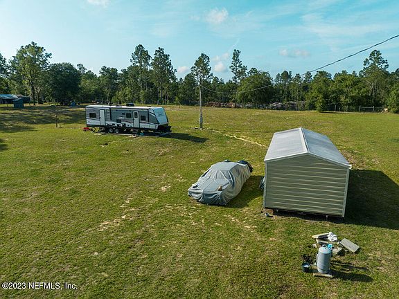 RV not included but for sale. Great location to build your home or mobile home. Has well, septic and power. This 1 acre lot has opportunities that are endless. Rural setting yet still conveniently located close to town. The area offers numerous lakes, parks and recreation areas, airport, golf course, full time fire station and EMT's, Santa Fe Community College, The Rally International Driving School, Electric charging station at City Hall (Keystone Heights). A quaint downtown area where resident's shop. Several national chain restaurants and bonus local ones. The residents value their community and are active in all areas to include schools, sports, churches, library and local events. Very close to Twin Lake Park Trailhead for Palatka to Keystone bike path. It is a commuter's community for many to Gainesville, Palatka and Jacksonville. 2" well; 200A service; Shed 12 x 30