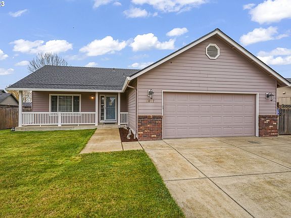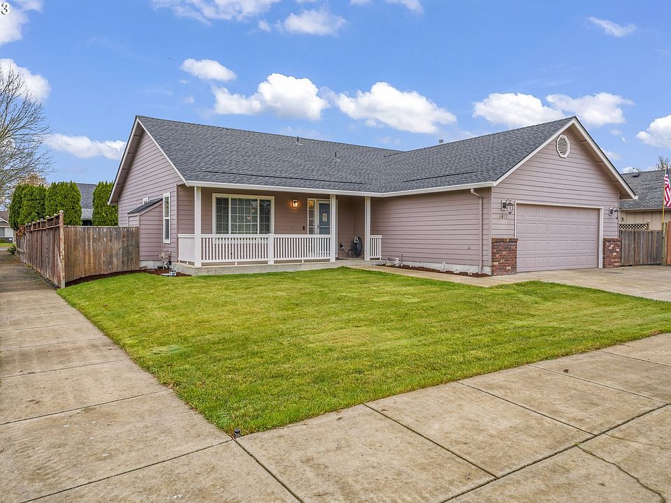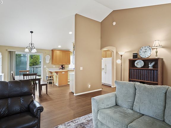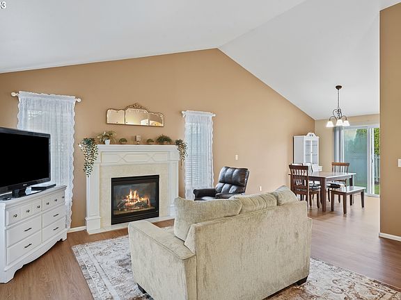 NEW PRICE! + 1 YR HOME WARRANTY OFFERED TO BUYER WITH REASONABLE OFFER! Nestled in a spacious corner lot in a serene Eugene neighborhood, this charming Bruce Wiechert built home is the perfect retreat. The residence features inviting vaulted ceilings and a stunning marble self-igniting gas fireplace, creating an ideal ambiance for cozy evenings. Recent updates include a brand new composition roof by Deschutes Roofing (July 2023), new hot water tank (December 2023), luxury vinyl plank flooring, a new ductless heat pump (July 2022), custom wood blinds, and a sleek kitchen with a built-in microwave and under-mount sink. The primary bedroom is a luxurious escape with an ensuite bathroom and a walk-in closet. The property offers RV parking with full hookups (sewer, water, 30 AMP service), a gas hot water tank, energy-efficient vinyl dual-pane windows, high-speed Xfinity internet, and a modern Ring DoorBell for enhanced security. Enjoy the perfect spot for sunsets on the front porch or host BBQs on the backyard patio. Privacy is guaranteed with a fully fenced property and a convenient side street access gate. Gardening enthusiasts will love the raised garden area, complemented by a sprinkler system for easy lawn maintenance. Meticulously maintained and offering an array of modern amenities, this home stands as a haven of comfort and convenience. Just minutes away from Eugene Airport, Meadow View K-8, and parks, this property is versatile, whether as a starter home, low-maintenance rental property, or a potential AirBNB given its proximity to the airport. The options are endless!