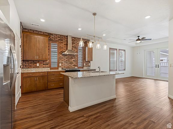 Huge price drop! Welcome to 6057 Folly Island Way, ideally located in Springhouse Village-Daybreak's premier 55+ active-adult community designed for resort-style living. Leave the yardwork behind and enjoy the private community center with pickleball courts, a golf simulator, fitness classes, a private pool, and a full calendar of activities. This nearly new rambler offers exceptional main-level living with 3 bedrooms, 3 bathrooms, and a loft, highlighted by numerous thoughtful upgrades, including plantation shutters. The beautiful kitchen features granite countertops, a center island with pendant lighting, stainless steel appliances-Whirlpool gas range with vent hood, Bosch dishwasher, and an included Frigidaire side-by-side refrigerator-plus pull-out drawers, a spacious pantry, and a custom backsplash. The inviting family room with tray ceiling opens through French doors to a covered patio and private yard. The primary suite also features a tray ceiling, a generous walk-in closet, and a barn-style door leading to a luxurious bathroom with dual sinks, a large walk/roll-in shower with bench, grab bars, dual shower heads, and a private water closet. A second bedroom on the main level includes built-in shelving and a free-standing storage closet (which stays), while the third flex room with barn door and shelving is perfect for an office, craft room, or formal dining space. Also on the main level are a second full bathroom and a laundry room with sink, built-in cabinet, and a convenient laundry chute from the loft. Washer and dryer are included. Upstairs, you'll find a versatile loft, a third bedroom with its own private bathroom, and a large walk-in closet. The garage provides built-in shelving, a walk-in storage closet, and motion-sensor lighting. Additional upgrades include a central vacuum system, tankless water heater, gas line for a BBQ, Cat-6 wiring, a security system, and main level bedrooms and bathrooms are designed to accommodate a wheelchair if needed. HOA amenities include internet, most snow removal, lawn care, and all of the wonderful amenities. All this, with a convenient location near the U of U Health Center, Smith's, and just minutes from Downtown Daybreak's shopping, dining, and amenities.