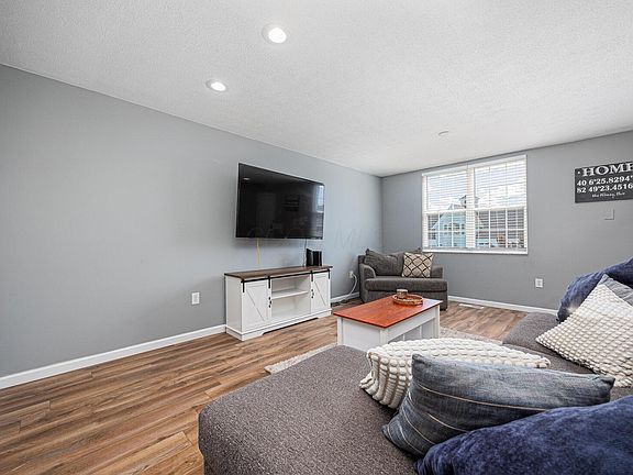 Corner fireplaceSwimming poolOpen floor planFinished lower levelRec roomPrivate fenced courtyard patioStainless steel appliances
