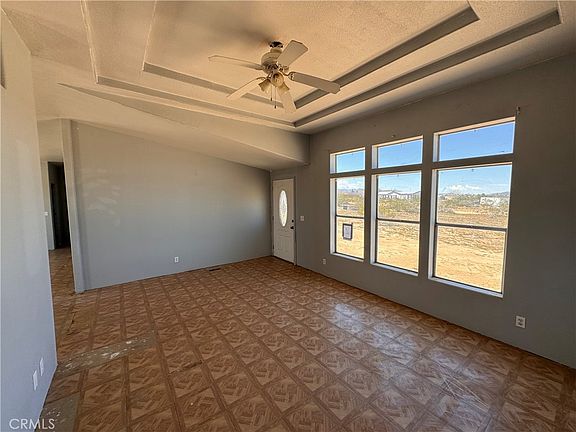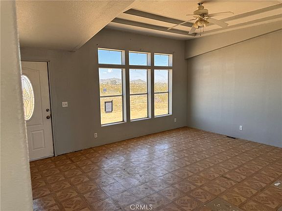 Delightful 3 bedroom, 2 bath home situated on over 2 acres of land offers privacy, desert views and quietness. Interior features include an open floor plan, sun lights that offer abundant natural lighting, and cozy brick fireplace in the family. The kitchen features a center island, ample storage space and thoughtful cutout view of the living room windows. The generously sized master bedroom is perfectly complimented with a master bathroom that features his and her sinks, inviting tun and separate enclosed shower. Exterior features include desert landscaping, modest back patio, and shed storage. Located just minutes from Goat Mountain and a casual drive from Joshua Tree National Park, your outdoor adventures are always within reach. Schedule your showing today!