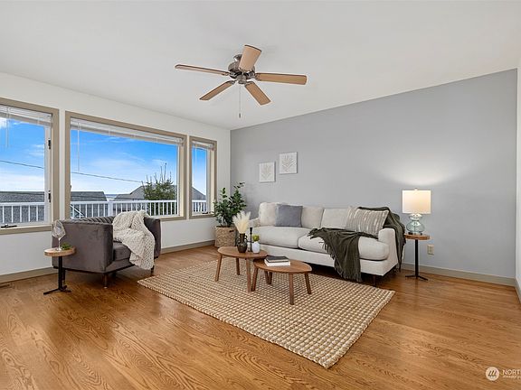 Welcome home to this meticulously maintained custom-built South Hill home that offers 4 bedrooms, 3 baths, and a bonus area off of the kitchen. Renovated in 2024, it boasts hardwood floors, new kitchen appliances and countertops, a luxurious primary bath with a walk-in shower, and solid surface countertops. A low-maintenance yard makes this a great condo alternative with no HOA. Enjoy views of the Pacific Ocean and fabulous sunsets year round! The rare 2 car garage and parking for multiple vehicles are also a huge bonus. Just a short stroll to Fairhaven, Boulevard Park, and Taylor Dock, plus the highest efficiency rating by PSE in 2023 and 2024!