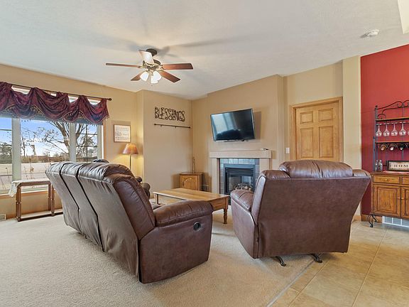 Welcome this exceptional 5-bedrm, 4-bathrm home. Designed for effortless main-level living, this home boasts an open floor plan, perfect for entertaining or everyday life. The heart of the home is the gorgeous kitchen, complete w/ modern finishes, ample storage, & SS appliances. Enjoy cozy evenings by the double-sided fireplace, which warms both the living area & primary bedm. The primary suite features a massive walk-in closet & luxurious ensuite bathroom. The closet also has a washer & dryer hook-up to add a second laundry. Downstairs, the huge family room w/ walk-out provides endless possibilities for relaxation & fun. The lower level is also plumbed for a future wet bar & includes a massive bonus room, perfect for a home gym, office, or game room. A radon mitigation system adds peace of mind. You’ll also have plenty of space in the extended 2-car garage – insulated & heated! Outside, the nearly 1 acre lot offers a 10x20 Dakota shed on a concrete pad, a dog kennel, and plumbed water access—ideal for outdoor projects or pets. A beautiful patio offers great space to relax. In-ground sprinkler will keep your lawn looking perfect! Updates include new roof, gutters, and siding (24), AC (22), & shed (16).